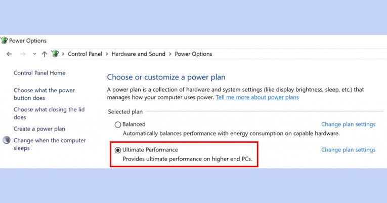 - Navigate back into Power Options, then click on "Change plan settings" next to "Ultimate Performance".